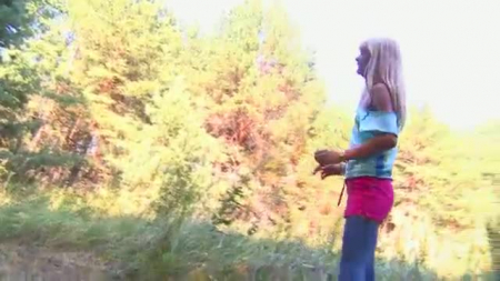 В волейбол блондинка играть не умеет, просто перекидывать мяч туда-сюда у нее тоже неумело получается, зато ржач стоит знатный. Собрав камешки с собой и попробовав еще поиграть с мячом, она все же понимает, что ее спутнику это уже все порядком надоело и он просто хочет дать ей в рот в лесу, а стройная худышка умеет хорошо сосать стоя на выпрямленных пирамидой ногах в теплых чулочках. Когда видео уже должно было закончиться в ротик, предположительно, русской девчонки, она начала ласкать и себя между ног в самый ответственный момент, проглотив семя, если оно вообще было.