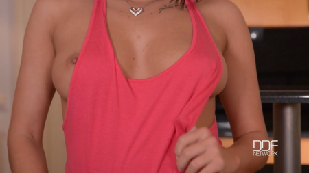 Стройная красотка мастурбирует на кухнеHD