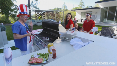 Богатый мужчина приглашает двух очаровашек к себе на празднование великого дня. Как вы понимаете, богатый и пузатый папик рассчитывает на секс со страстными особами. Но девушки не очень то спешат удовлетворять его. Зато подружки просто чуть ли не на бросились на молодого парня, который так же был приглашен. Пока хозяин пытался приготовить что-то на гриле, красотки и молодой мужчина успели хорошенько потрахаться, причем стоя рядом с грилем.
