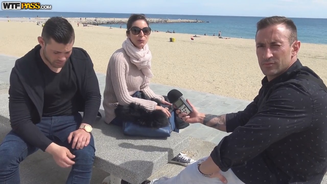 Два друга хотят самку (причем бесплатную!) для интимных забав. Парни подходят то к одной, то к другой девушке и, наконец-то, предлагают заняться сексом втроем. Милая девушка почти мгновенно соглашается на развлечения с двумя незнакомцами на пляже, и даже дает отыметь себя в две дырки сразу - в ротик и в вагину. Получает наслаждение от страстного секса под открытым небом.