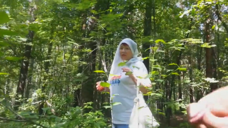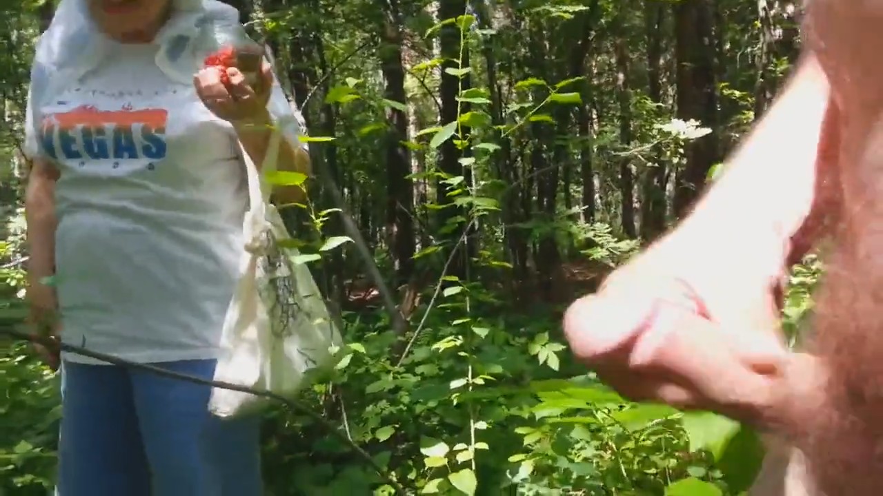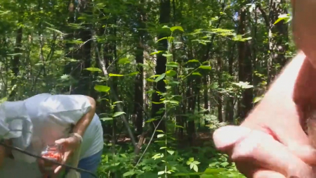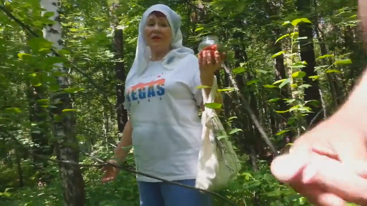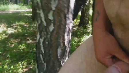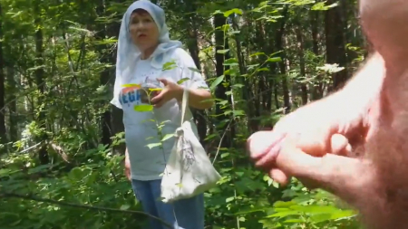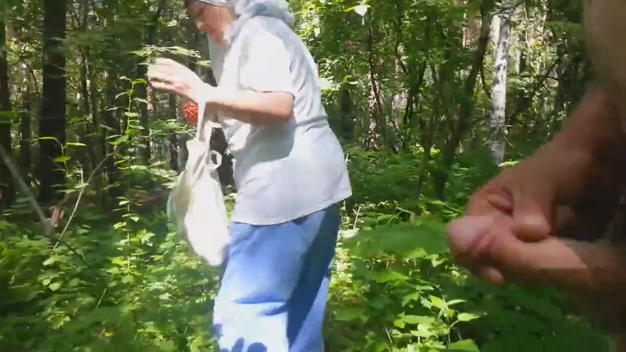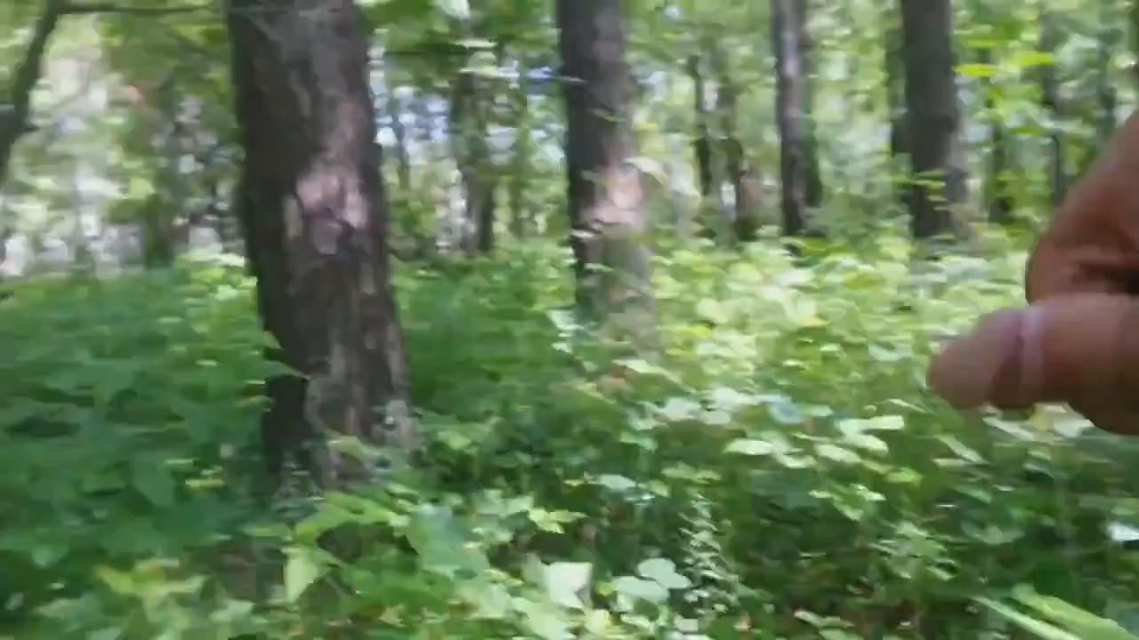 Молодой человек полностью обнаженный по лесу идет и пипиську теребонит. И неожиданно парень натыкается на бабушку. Надо отметить, что бабуля члена как такового не испугалась - она еще и моральную поддержку парню оказала - и поговорила с ним и утешила, вот только к себе подходить близко не разрешила. И вот от слов пожилого человека и от постороннего взгляда парень бурно кончил.