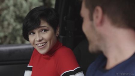 Короткостриженная няшка поймала машину, вот только уехала домой не к себе, а к водителю тачки. Молодому мужчине одиноко, да и провести вечер в приятной женской кампании совсем неплохо. Вот только телка с упругими сиськами сама соблазнила парня, который и не сразу то отреагировал, поскольку растерялся.
