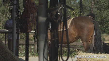 Трахаются возле лошади и лошадиного стойлаHD