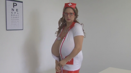 Слегка полноватая врачиха прикупила два костюмчика в секс шопе и пришла на работу. Закрывшись в своем кабинете, телка начала примерять наряды медсестры. Но красный оказался маловат - милашка не смогла застегнуть костюм, так как помешали огромные сиськи. Белый же был впору. Одевшись в сексуальный костюм, доктор приласкала сочную плоть. Вы только посмотрите как грудь трясется от малейшего прикосновения, как от страсти набухают соски. Остаться равнодушным невозможно.