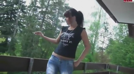 Квартиры разные, но открытая веранда общая. По этой причине милашка довольно часто сталкивается со своим соседом, когда выходит покурить. И развратница слегка "запала" на мужичка. В одно прекрасное летнее утро стройная сучка дождалась, пока ее супруг уедет на работу, и сразу же направилась к соседу, сидевшему напротив нее. Без лишних предисловий ненасытная брюнетка стянула с мужчины штаны и, не выпуская сигаретку из рук, подрочила и отсосала ему, собрав и проглотив густую сперму.