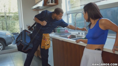 Привлекательные подружки занимаются, но настолько скучно им это занятие, что от тоски девчонки чуть ли не на стены лезут. Судьба преподнесла очаровашкам небольшой сюрприз в виде чернокожего сантехника - стандартная проверка. Наслышанные о том, что у негров большой ствол, любопытные мартышки решили проверить на самом ли деле так, и тихонько пробрались на кухню, жарко перешептываясь и обсуждая молодого человека. Решившись, одна из них схватила парня на член через одежду. Знаете ли, сложно сопротивляться, когда тебя за хуй держит потрясающая телка, а если две - то и сопротивляться нет смысла. Молодой парень, конечно же, позволил подружкам убедиться в размерах его агрегата. Удивленные девушки с радостью отсосали черный ствол на кухне, а затем поднялись в спальню, где и отдали свои дырки на растерзание незнакомцу.