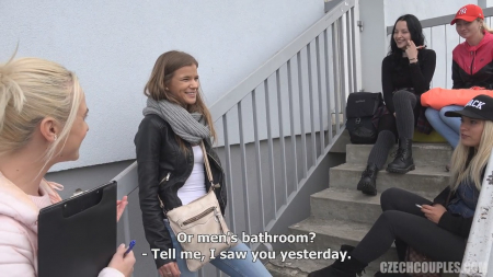 Девушка со своим оператором проводит опрос среди молодежи, выясняя в ходе своей работы, насколько деньги могут развратить человека, заставив нарушить какие-либо моральные ценности. Подойдя к группе курящих девиц за школой, обаятельная "ведущая" начала задавать девушкам вопросы, начиная вполне с невинных. Дальше вопросы стали откровеннее, а потом и вовсе была предложена сумма денег в обмен на показ груди. Постепенно увеличивающаяся сумма (с трех до семи тысяч) подвергала девушек испытанию. Все девчонки отказались, за исключением одной - двадцатилетняя Натали согласилась. Уединившись с новыми знакомыми в подъезде, шлюшка показала сиськи, а после за гораздо большую сумму согласилась поебаться прямо неподалеку от квартиры, в которой живет. Поскольку девушка робела, что делать показала опытная "ведущая". Когда же Натали уже осмелела, проводившая опрос девушка встала "на стреме", оберегая секс "оператора" с прелестной шалашовкой.