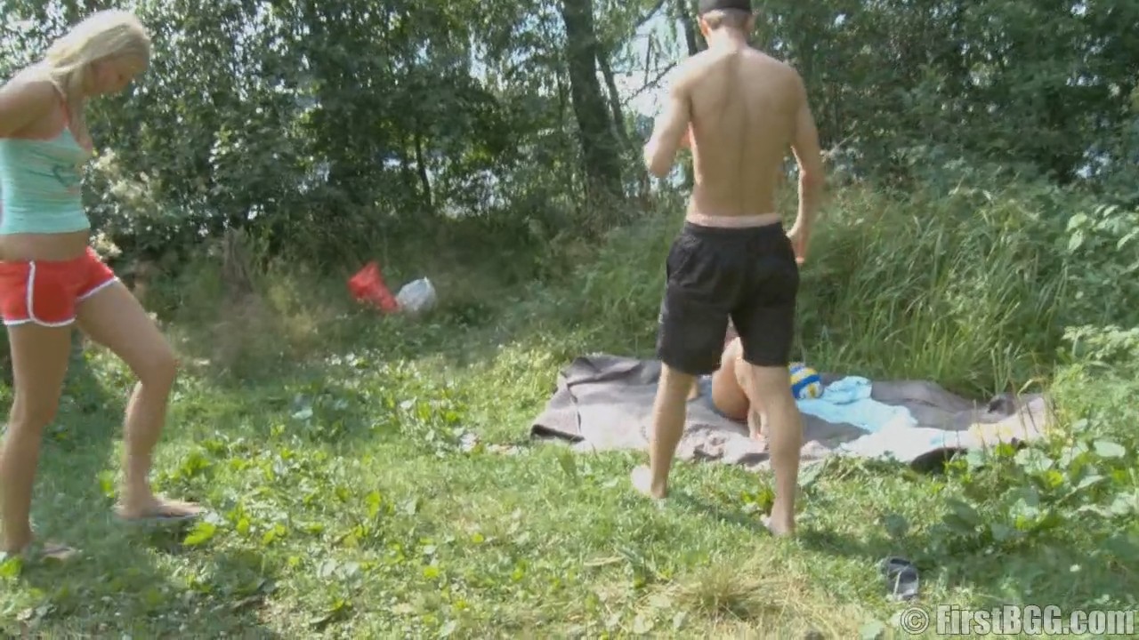 Вырвавшись из пыльного города, привлекательные девчонки устроили себе настоящий пир на лоне природы. Игра в волейбол, приносившая подружкам положительные эмоции, неожиданно была прервана посторонним вмешательством. Молодой человек искал место, в котором можно позагорать, и вышел как раз на берег озера (где и расположились очаровательные девушки). Познакомившись, все трое продолжили игру, но не надолго, поскольку милашки придумали более увлекательное занятие. Городские потаскушки отдались деревенскому парню, подумав о том, что это довольно интересное приключение. Твердый член вонзался в киски новых знакомых (Кати и Любы) по очереди, делая парня самым счастливым.