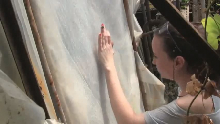 Молодые люди не раз смотрели вместе порно и нашли то, что нравится обоим - секс через отверстия в стене. И вот однажды, проснувшись рано утром, милашка нашла записку с указаниями, в которой говорилось о том, что в парнике девушку ждет сюрприз. Желая запечатлеть на камеру такой волнительный момент, привлекательная брюнетка взяла аппарат и не торопясь отправилась в указанное место. Какого же было удивление симпатяги, когда она увидела "подарочек" - в пленке (из которого и была сделана стенка) было отверстие и в окошко выглядывал член. Естественно, девушка не стала долго думать и руками (периодически подключая ротик) довела мужчину до дичайшего оргазма.