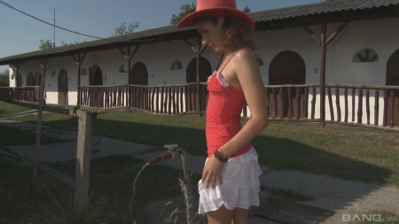 Палящее солнце заставило всех жителей небольшого городка сидеть дома, лишь симпатичная особа оказалась смелой и отправилась прогуляться, впрочем, довольно скоро пожалев о своем поступке. Изнемогая девушка добралась до колонки и решила немного остудиться - испив прохладную воду, милашка обтерла и разгоряченное тело, и вовсе уходить не торопилась. Нашелся и еще один любитель прогулок - молодой человек на байке также нашел спасение от жары возле целительного источника. Видимо, все таки голову милашке напекло - она без раздумий схватилась за член незнакомца, впоследствии получив фаллос во все дырки прямо посреди улицы.