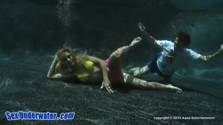 Молодая пара пробует секс в бассейне под водой. Жаркая девица оголила свое роскошное тело и заманила любовника под воду. Под под прозрачной толщей жидкости они страстно поддались неутолимому желанию. Красавица отлично держится и кажется вот-вот ей пора всплывать, но удовольствие заставляет терпеть
