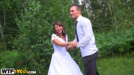 Ребята решили пожениться без шумных пиршеств и гостей - роспись в загсе и несколько друзей детства (поскольку росли в одной компании, то и друзья общие). Один из парней рассказал молодоженам об одной традиции, якобы существующей у северных народов - по легенде первую брачную ночь нужно начинать с минета. Рассказал и ушел, а молодые решили последовать совету мулатика и развратница отсосала хер муженька. Очевидно, пьяненькая симпатяга и не подозревала о готовящемся для нее сюрпризе (муж то постарался) - обманным путем милаху завели погулять в лесочек и отодрали тремя членами (мисс была уже на все согласна) во все щели.