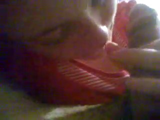 Чем бы заняться, пока единственное лицо, мешающее молодой паре заниматься сексом, это мамка парня, которая пошла готовить ужин? Пока она занята на кухне, а они пролеживают бока в гостиной через стену, самое время повеселиться и черпнуть адреналина. Так что девчонка без лишних уговоров начинает сосать член парня, не взирая на опасность появления мамки в коридоре. Минуты две она делает превосходный, хоть и неопытный минет, но крик матери о том, что пора идти ужинать, резко заставляет ее вздрогнуть, и чуть не откусить кусок хуя.