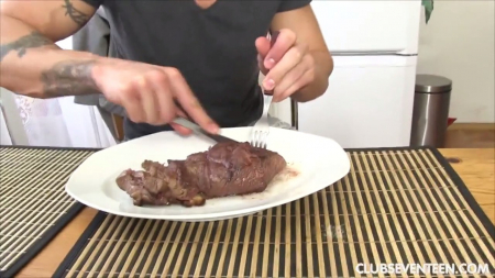 У кого-то сегодня был просто великолепный завтрак. Из серии "завидуют все". Дело было ранним утром, и первым проснулся не он, а его замечательная и любящая девушка. Она, специально одев только кухонный фартук, без трусиков пошла жарить любимому настоящий стейк. Он вышел просто великолепным, однако после плотного завтрака не хватало вишенки на торте, а именно не менее сочного, чем мясо, минета. Она выложилась на полную, но достигла момента, когда горячая сперма ударит ей в лицо.