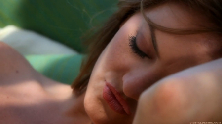 Очень сексуальная рыжеволосая красотка выходит в сад в белоснежном нижнем белье. Девушка не спеша, кокетливо обнажается, а потом садится на диван и начинает теребить свою киску.