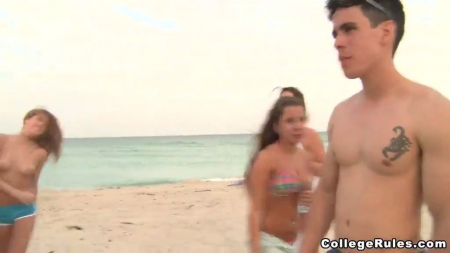 Ох ужи эти распоясавшиеся забугорные студенты колледжей. Никакой скромности, только секс и драйв. И сегодня они держат свой путь на машине в крупный торговый центр за одеждой, но это ведь было бы скучно, если бы они не заехали по дороге на нудистский пляж, верно? Девчонки принялись насасывать члены еще в машине, продолжили на пляже, а затем в примерочных торгового комплекса. Парни уже просто не выдержали такого напора и по быстренькому сняли номер в отеле, организовав там небольшую оргию.