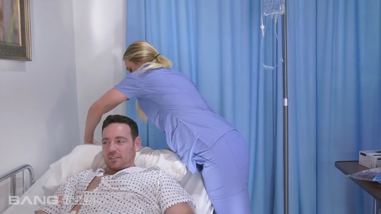 Если ты не можешь подкатить к даме обычным способом - подкати к ней на коляске. Успешный парень в очках-авиаторах не привык к отказам со стороны молодых пассий, пока не встретил социальную работницу - классную блондинку с торчащей из униформы круглой попкой. Увидев, как мило она откатывает инвалида-колясочника, он не увидел ничего зазорного в том, чтобы спросить ее номер в этот щепетильный момент. Она разозлилась на парня и отказала. Но тот не стал падать духом, а попросил друга привезти из магазина коляску и смирительную рубашку. Войдя в образ инвалида, он как бы невзначай упал с коляски прямо возле ее машины, и той ничего не оставалось делать, как отвезти его в больницу. И его боль все никак не унималась, ведь единственный способ сделать это - подрочить его член...