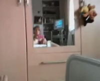 Мастурбирует расческой перед зеркалом