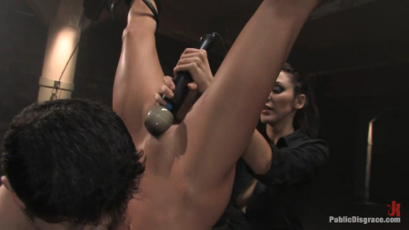 Предпочтения в сексе бывают абсолютно разные. Встречаются девушки, которые возбуждаются от жесткого порно. Они получают просто мазохистское наслаждение от пыток и беспорядочных оргий. Брюнетка помещенная в колодки стоит посреди комнаты, а вокруг находятся зрители. Прищепки на сосках и сиськах, проникновение в девушку когда та висит вниз головой - это лишь толика всего того, что выпало симпатичной брюнетке.