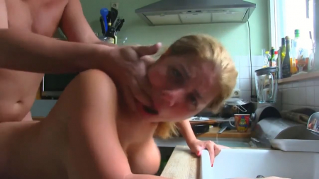 Домашний секс с грудастой милф на кухне