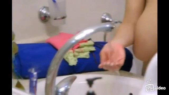 Русская азиатка мастурбирует на свое отражение