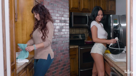 Утро домработницы в этом доме стабильно начинается с выпрашивания денег у хозяина дома. Видимо это приносит ему какое-то субъективное утонченное удовольствие, ведь она смотрит на него глазами кота из "Шрека" и унижается перед ним. В итоге она получила свои деньги, но это ее порядком задолбало, и она грустная пошла в уборочную, где ту ждала жена того мужика. Она пыталась утешить бедную молодую девочку, чтобы та не унывала, да та от неловкости облила свою белую футболку водой, что все сиськи стали на виду. Но женщина понимающе к этому отнеслась, сняла с нее футболку, и запустила руку в трусики...