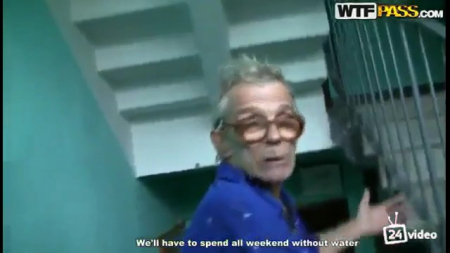 Русские спалились когда снимали порнушку в подъезде. Два мужика сняли рыжую шлюшку за небольшую сумму денег и отвели в подъезд, где телка отсосала обоим. Один из парней снимал все на видеокамеру. Но ребята спалились. В подъезд вышел дедок, которого потянуло на душевные беседы. Парни вежливо поговорили с ним, а потом когда дед ушел, один из парней оттрахал девку.