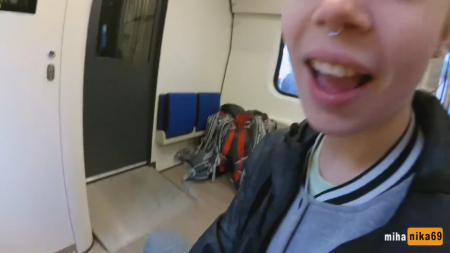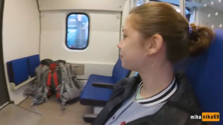 Пустой скоростной вагон в поезде - поистине уникальная ситуация, и по факту, парочка может делать там все что хочет. Но есть нюанс - здесь повсюду камеры. Мертвая зона у них только в начале вагона на двух передних местах, поэтому парочка переместилась именно туда. Теперь пока поезд не заполонили пассажиры, нужно сделать что-нибудь эдакое. Например отсосать у парня прямо в вагоне. Гениальная идея! Ей сначала, конечно, стремно, но в этих делах - главное начать. А потом уже раз-раз, и она уже мутит чуваку глубокий минет, а тот обильно кончает ей в рот. Хэппи энд.